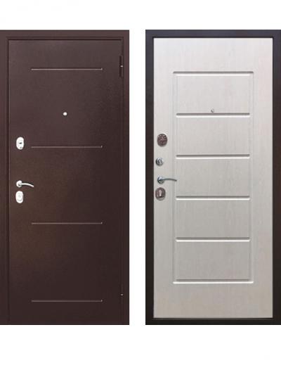 Дверь эконом: порошковое напыление, цвет Медный антик + МДФ-панель (10 мм), цвет Беленый ясень ЭК-2056