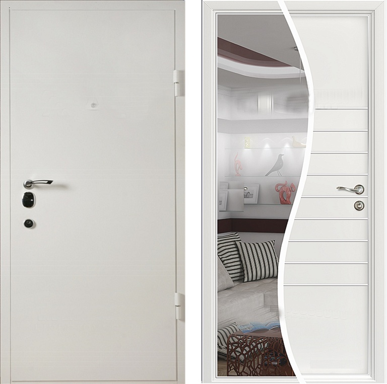 Металлическая дверь с зеркалом и порошковым напылением. СП-1946